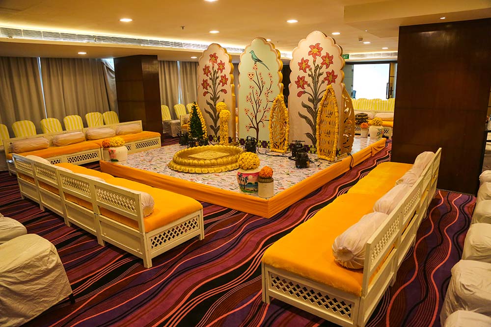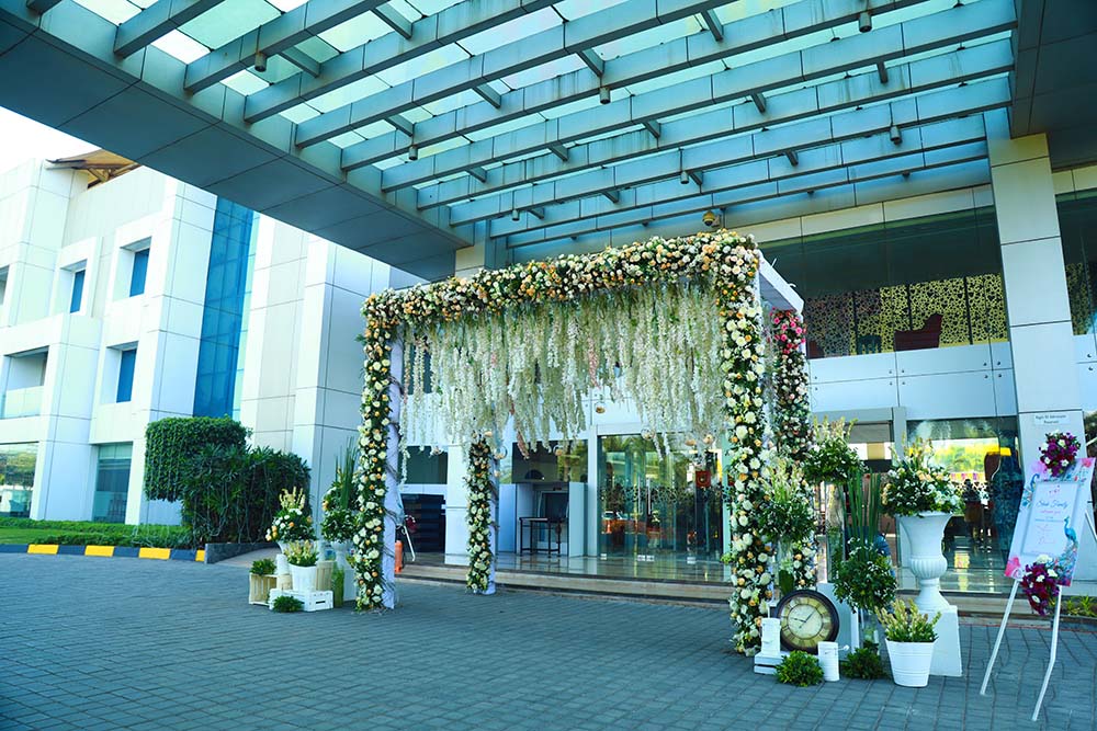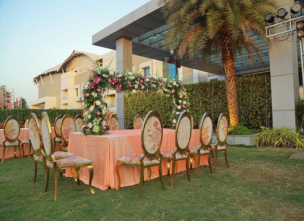Its tastefully appointed 176 rooms give your wedding guest all the pampering they need in between the festivities while its plethora of in-house outdoor and indoor venues leave you spoilt for choice as you plan your wedding! Be it the 150 pax Spades banquet hall for a colourful mehndi, the 200 pax Hearts banquet hall for the sangeet, the 60 pax Diamond banquet hall for a close-knit haldi, the 200 pax Sky Terrace for a starry cocktail or The Lawns that can hold up to 2000 pax of a floating crowd for a spectacular wedding – this resort gives you a free rein to make your dreams come true! Plus, their in-house team also guides you at every step of the planning process by offering services like seating arrangements, floral décor, catering, bar services, lighting and sound, music and entertainment, accommodation, hospitality and transportation.