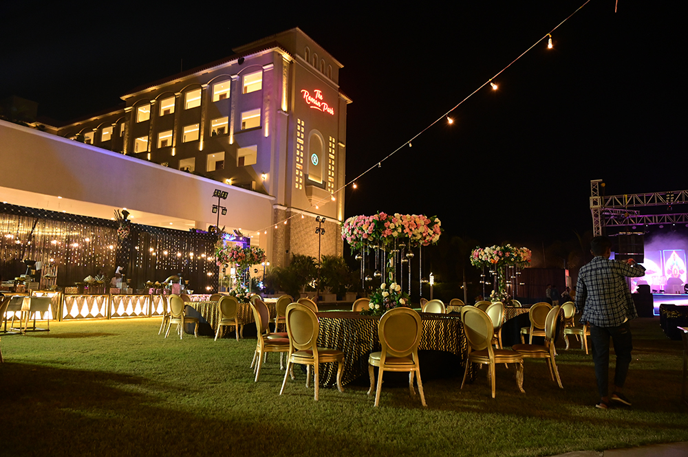 At The Roman Park, extravagant living can be experienced from the minute you take your first step inside it! Equipped with 90 luxuriously appointed rooms and suites, you can rest assured that your guests will have a gala time as they indulge themselves while taking in the scenic views from their windows. Offering some of Raipur’s finest accommodations, dining experiences and comprehensive banqueting facilities- this venue is perfect to make the wedding of your dreams come to life. Its array of in-house venues lets your coupled creativity take wings with banquet spaces, like, The Grand Crystal, Royal Ballroom, Roman Paradise and the Royal Palms party lawns for outdoor celebrations.