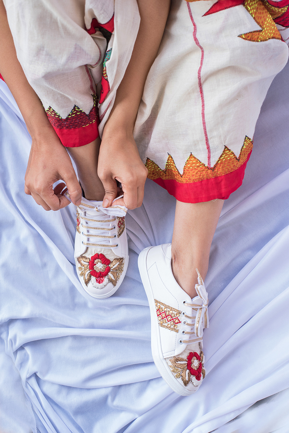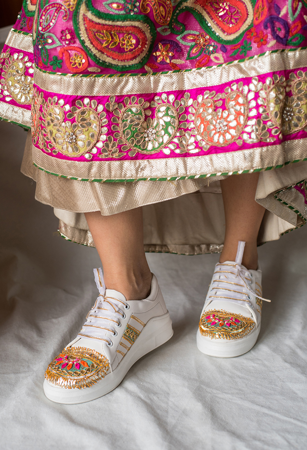 An ardent admirer of sneakers, Shruti Kasat founded Saree Sneakers from her own need to fuse fashion and comfort together. Understanding the needs of the new-age women who wants to look chic while being comfortable, this brand designs high-quality fusion sneakers that are perfect for festive occasions where you have to be on your toes. Hand embroidered and intricately decorated, Saree Sneakers make a glamorous addition to your wedding wardrobe as they are versatile and make a statement wherever they go!