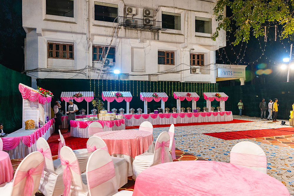 Host cozy pre-wedding functions like mehndi or haldi of up to 80 pax at the Sapphire AC Banquet Hall, while Gemstone – the sprawling open-air lawn promises a divine backdrop for majestic weddings or Receptions of up to 800 guests. Replete with delectable vegetarian fare and impeccable hospitality, VITS Sharanam Hotel welcomes you to celebrate your special moments the way your heart desires!