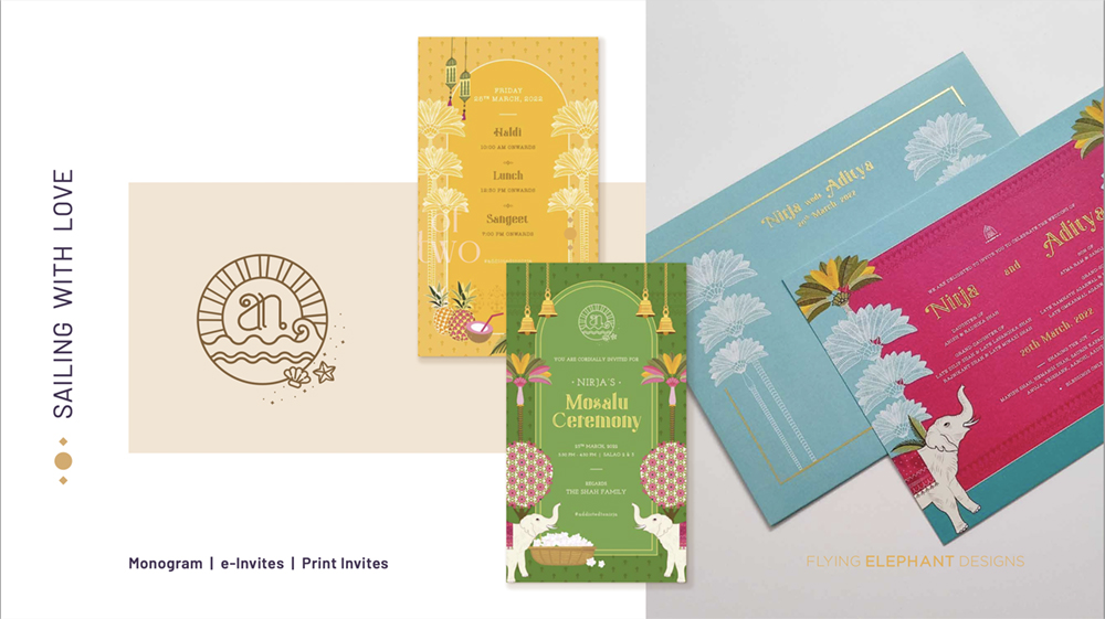 Mumbai-based VOWS by Flying Elephant Designs is a full-service wedding invitation and stationery brand that focuses on expressing personal stories through creativity. Amalgamating elements from their clients’ journeys, cultures, and personalities, they offer a variety of invitation designs and a wide range of wedding stationery to give your guests a glimpse of your celebrations in everything they receive.
