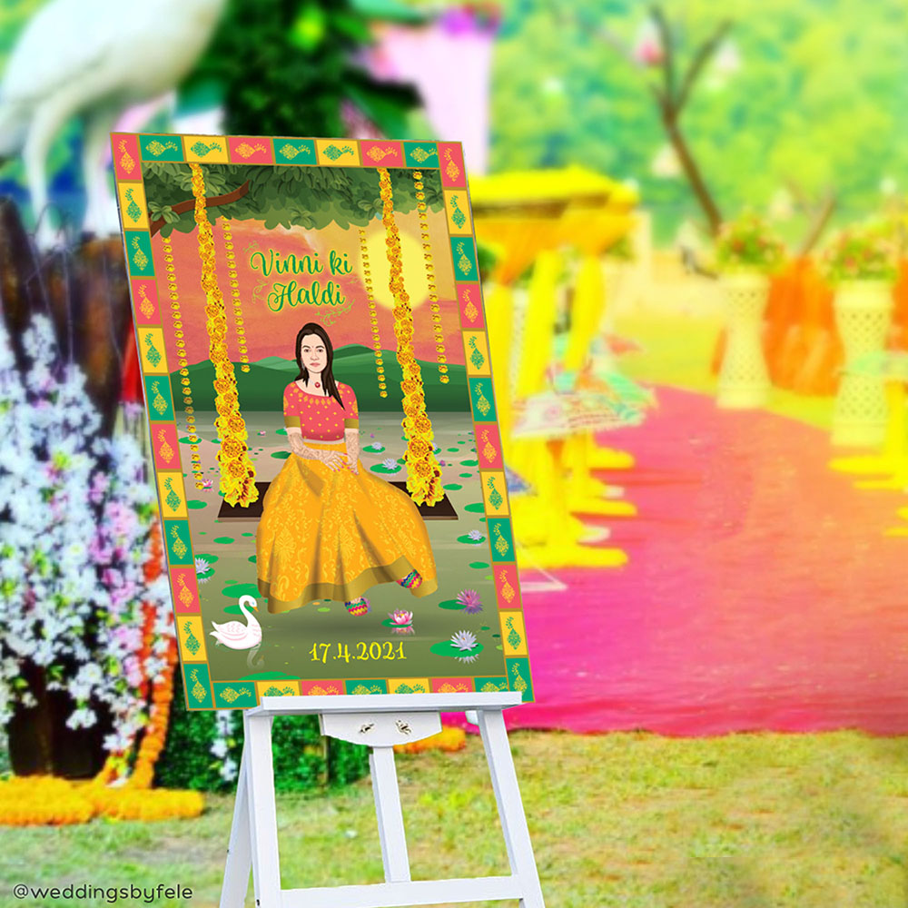 Always open to experimenting, they also design welcome letters, itineraries, key jackets, and thank you notes specifically for your wedding. And, if you wish to amp up the decor, they also craft signages, welcome boards, placards, prints for the dancefloor, lobby counter prints, backdrops, and photo booth cutouts that keep the selfies coming!