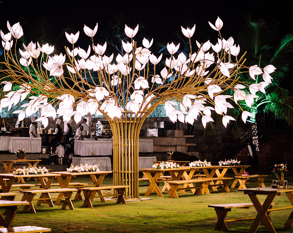 Her team of young designers work with local artisans and craftsmen to tell stories through spaces and celebrate Indian Heritage, with a sensibility rooted in the balance between bold and beautiful. They focus on meticulous planning, designing, conceptualizing and executing the entire event with the utmost love and dedication, and have planned spectacular weddings across Bangalore, Mysore, Hyderabad, Chennai and Hampi. They ensure that they weave-in the character and personalities of their clients to create a celebration that is nothing less short of a dream come true.